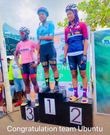 Congratulations to Esther J Mansaray on taking her third consecutive podium in the third round of Salone Cup 2023-2024 criterium series. Esther travelled 300km from Freetown with Team Ubuntu captain Fatima Deborah Conteh for the race in Kono. Well done to Deborah (right) on your return to racing and 4th position too.